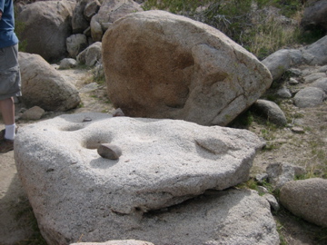From Ranchita we took the S22 over to the S2 and drove back into the park. We then took a left on the 78 and went about 6 miles to the Mine Wash Road. There we went south about a mile and a half and parked next to a large pile of rocks (reminiscent of the rocks at Joshua Tree). In the late 1800s there was a Kumeyaay village, so we walked around to see what remnants we could see.